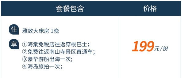 雅致大床房1晚+游船出海+海岛旅拍+权益,199元