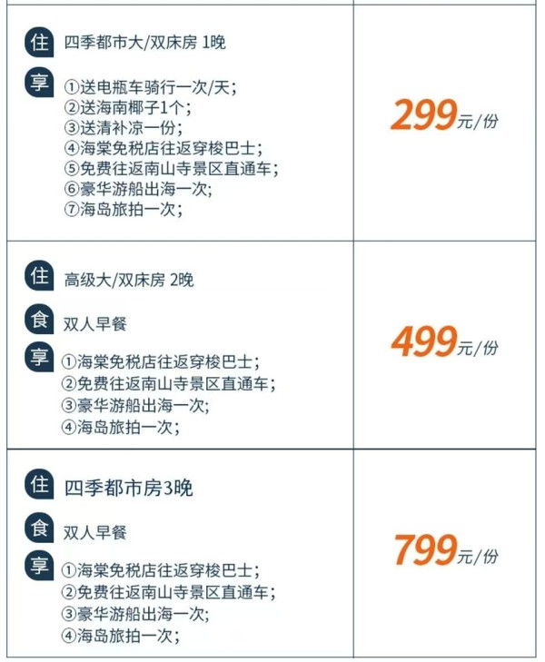 四季都市房3晚+双早+游船出海+海岛旅拍,799元