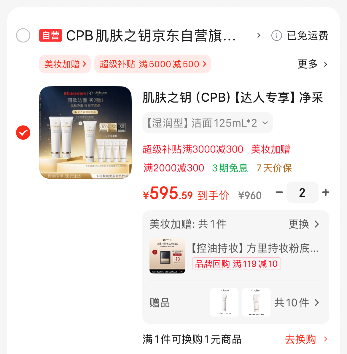 又降了❗️595💰CPB 洗面奶🉐3.6支量❗️