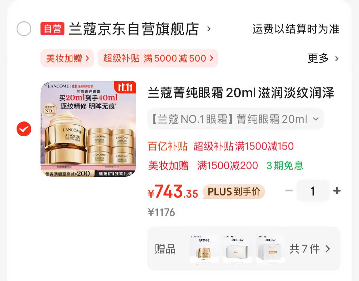 743💰🉐兰蔻菁纯眼霜>两件正装量❗️