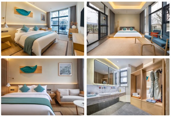 酒店位于婺女洲茶圣区域,紧邻茶圣博物馆,酒店客房设计独特,拥有复式套房、大床房、双床房、双卧套房等多种户型,面积50-120㎡,每一栋都背靠茶园、古树环统,层楼叠院与湖光山色交辉相映,处处是景,步步入画,带你体验如茶如画的轻奢别墨生活空间体验。酒店在景区内需统一至游客服务中心前台办理入住手续。