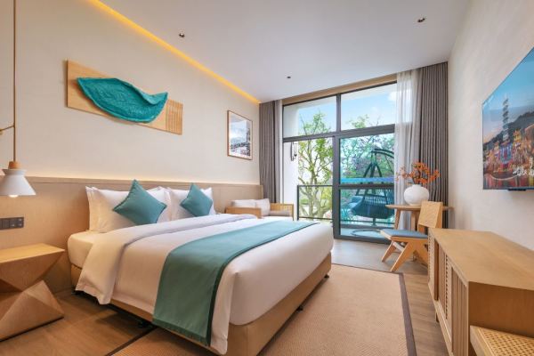 婺女洲度假区里有多家酒店,这家在度假区内算是最高端的,大部分都是独栋的房间,这次套餐给到的还是双卧别墅属于是非基础房型,可入住4人,4月不加价时段的日历房价格要1700/晚,套餐便宜了不少。