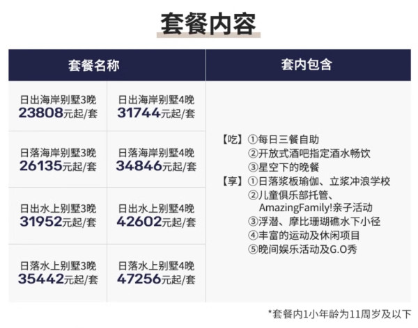 现有马尔代夫Club Med翡诺岛度假村 指定房型3-4晚一价全包套餐,含住宿+每日三餐自助和酒水畅饮+浮潜/珊瑚礁活动+儿童托管+Amazing Family活动+G.O晚间秀等等,最低23808元起/3晚,可在产品详情页领取250元会员券,券后23558元起/3晚,折合3926元起/人/晚。套餐使用有效期为2025年11月29日至2026年5月3日,不约/约不上可退,预约后提前31天也可免费退。