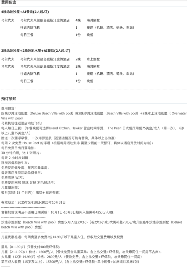 暑期不加价!奢华六星岛,看魔鬼鱼,15岁以下吃住全免!六星一价全包马尔代夫威斯汀酒店4晚浮潜A级