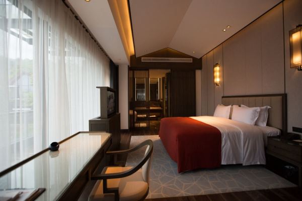 酒店秉承“轻奢雅居”的理念,提供“一站式管家服务”。酒店耗时两年,千锤百炼只为您打造天台特色的休闲度假酒店。总面积5700平方米,房间里宽敞明亮,奢阔的落地窗让室外院落的苍翠山峰和豪华布景映入眼帘,房内时尚的西式风格与当代中国风完美统一,让您身心禅定放松。