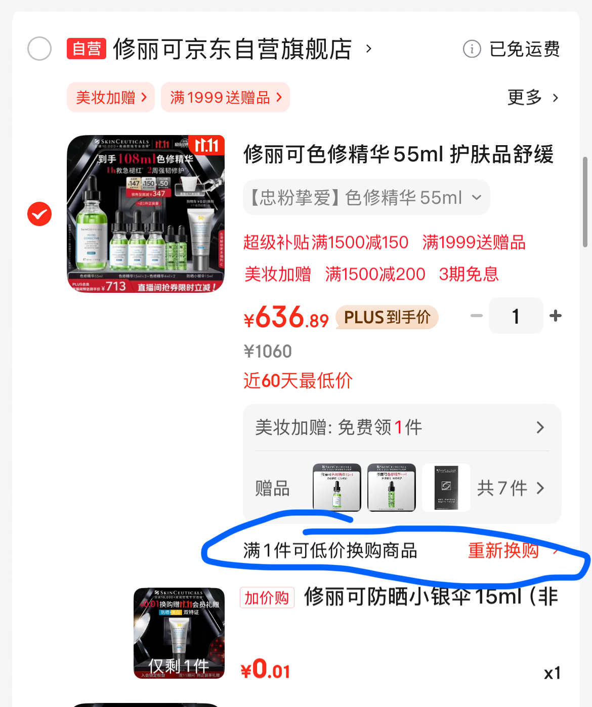 修丽可色修精华❗636💰到手108ml再送防晒!