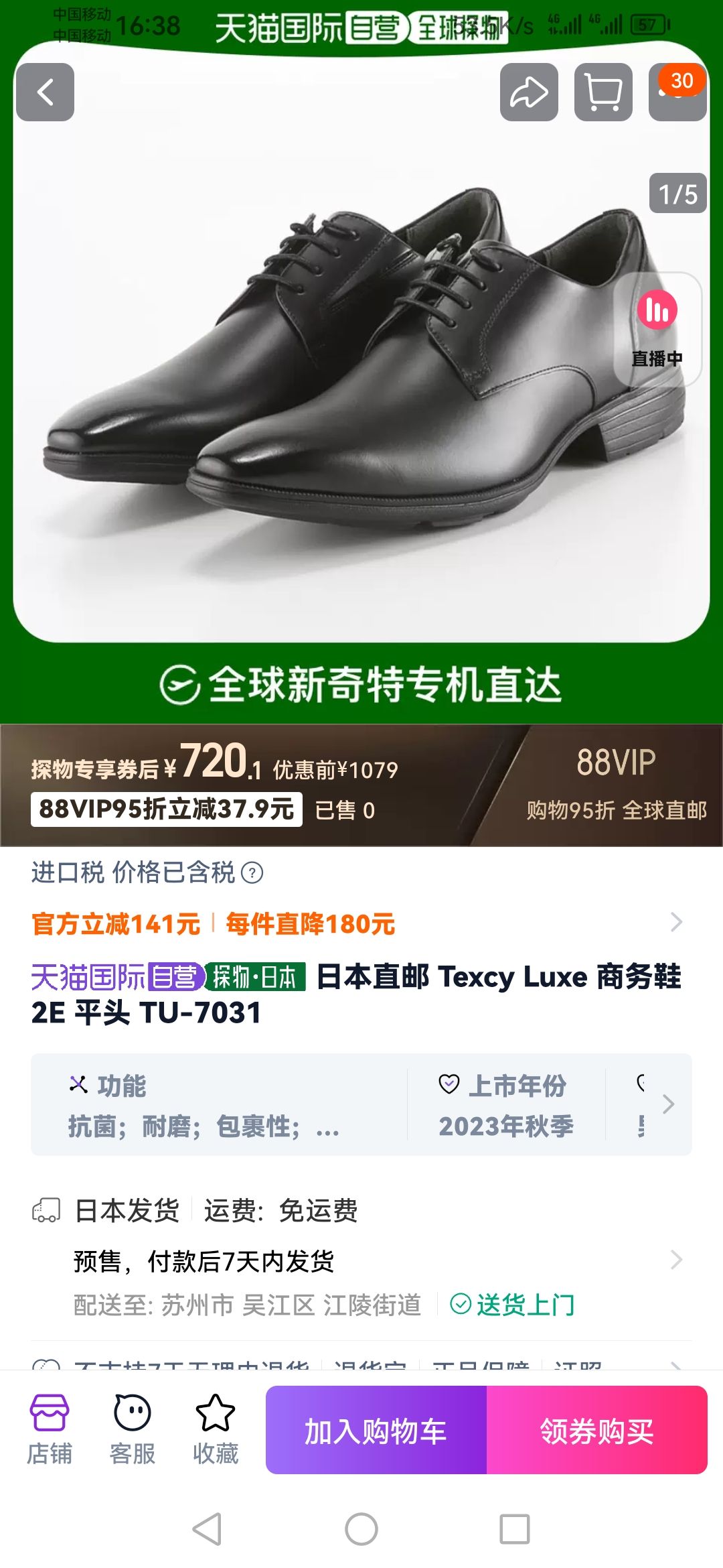 官方直营此款目前活动售价1079元,参与满1件打9.5折,立减141元,立减180元优惠活动,下单1件,实付低至720.1元。