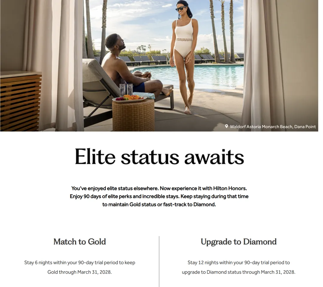 26年的希尔顿钻石匹配挑战更新了!完成挑战后的钻石有效期至28年3月31日!