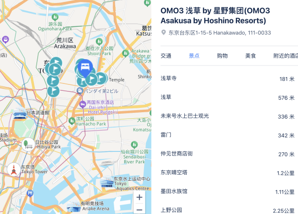 这家看地图就知道地理位置有多好了。浅草寺步行可达,双地铁6-8分钟步行可达,距离晴空塔也只有1.2公里的距离,去哪里都方便。而且浅草寺一直都是人流爆满,住的近,可以一大早错峰去打个卡,体验感不要太好!