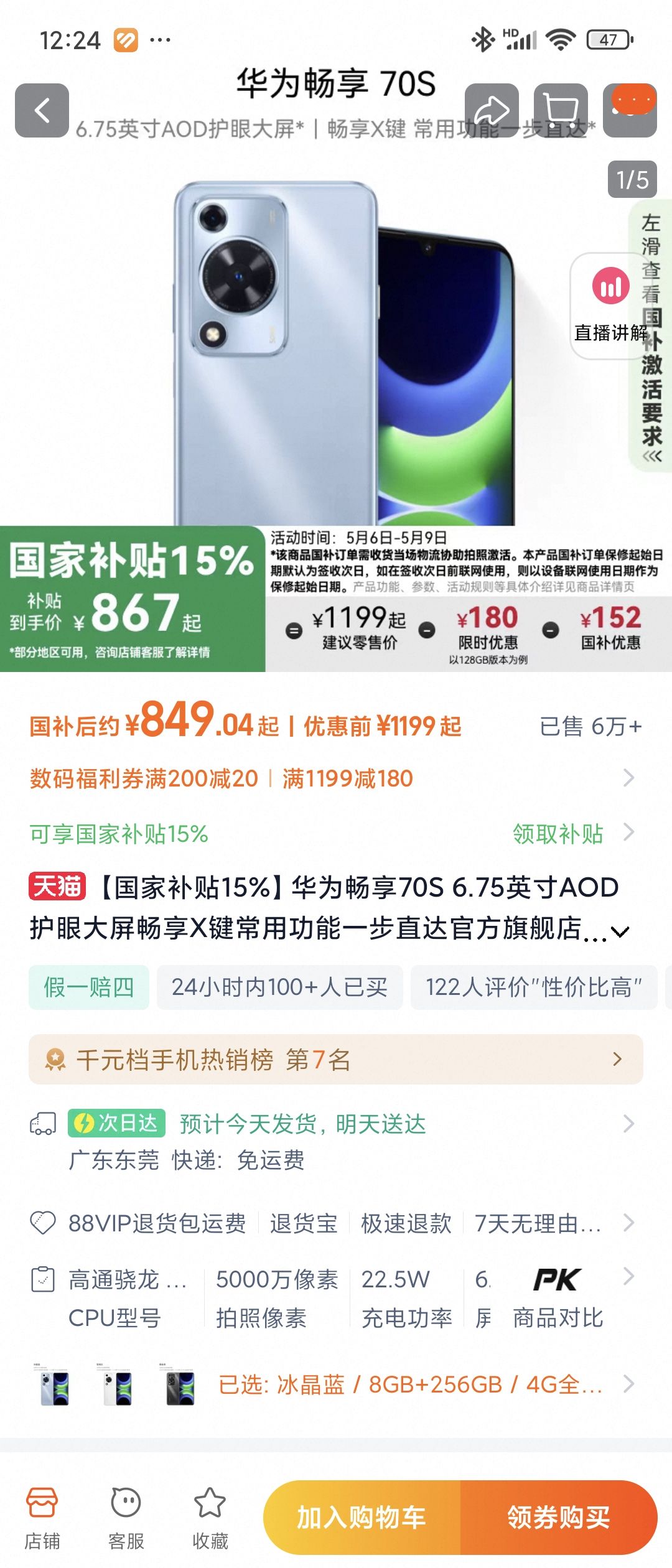 华为 HUAWEI 畅享70S 4G手机 8+256g