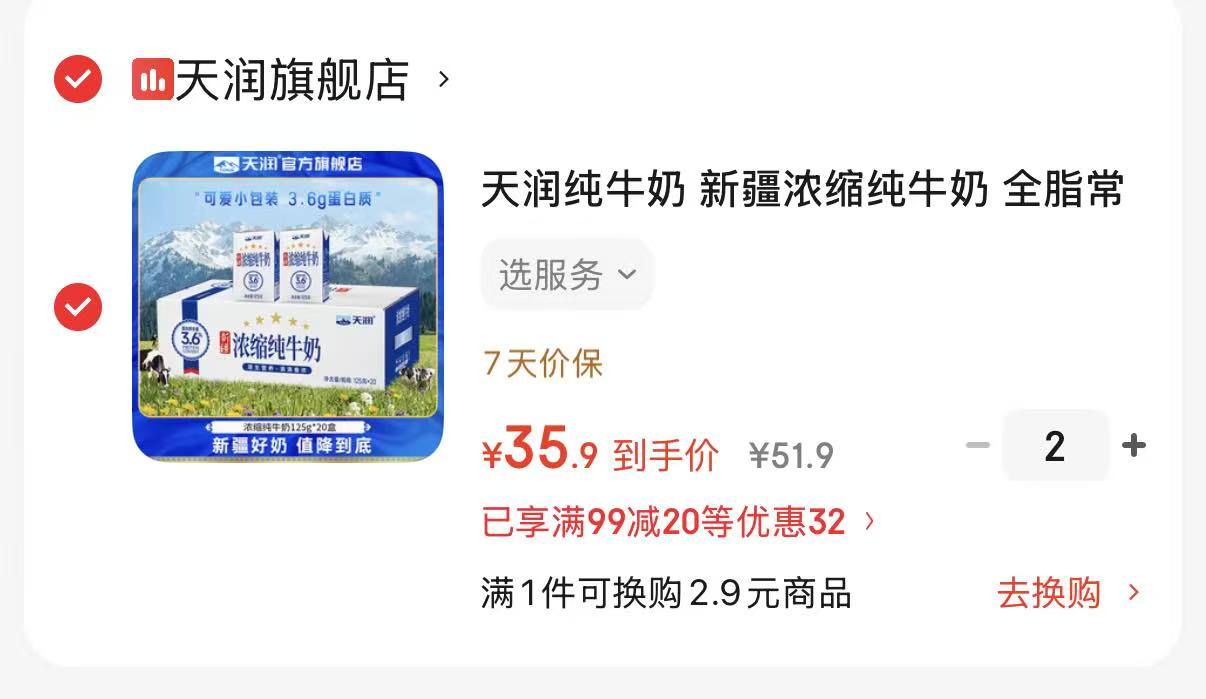 71.8到手两箱共40盒,🈴1.7/盒,高蛋白奶!3.6g蛋白质!