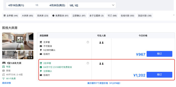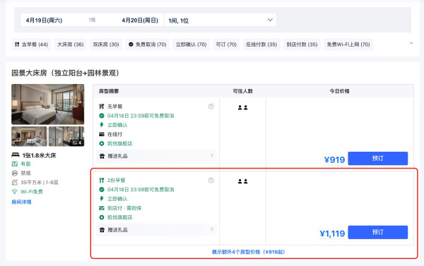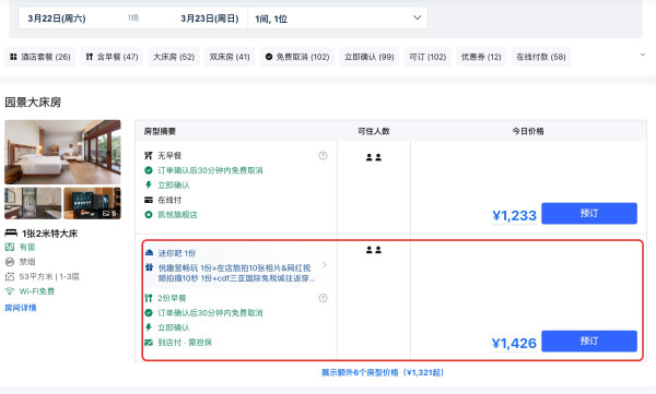 先来两个历史低价,春促出了个比双11还便宜价格多少有点意外,基础房型用完“满2999-150”优惠券,只要2038/2晚,平均下来真的千元出头一晚!还送了100元×3张(共计300元)的无门槛餐饮消费券,非常有诚意了。这还没完,提前3天预约可以视房态升级到园景客房,同款日历房价格要1400+/晚,这波血赚了。有效期到6月30日,仅法定节假日有补差。