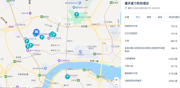重庆富力凯悦酒店算是重庆早期的豪华酒店之一,即便放到现在来看,它的核心竞争力也丝毫没有缺失。酒店位于观音桥-北城天街商业区,这里不管去哪里交通都超级方便,距夜生活中心九街步行约10分钟,距解放碑约15分钟车程,单凭这点让这家凯悦的人气就非常的高。