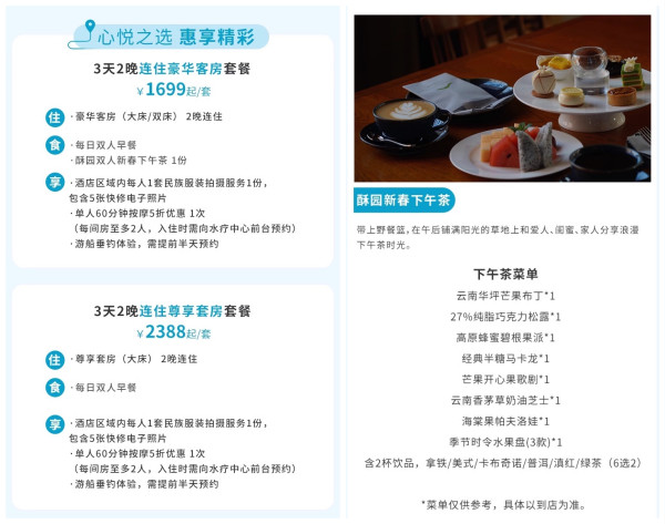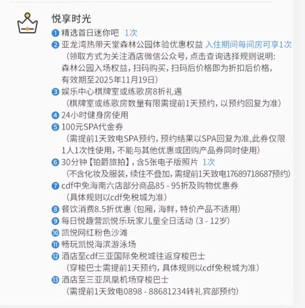 套餐权益也给的很有诚意,只要入住酒店都能享受到如下图的礼遇,算下来最低500以内就能拿下,真的不错。套餐有效期到6月30日,仅清明和五一有补差。