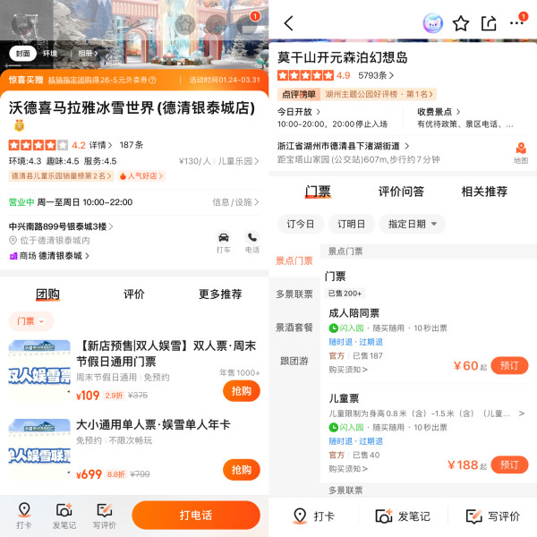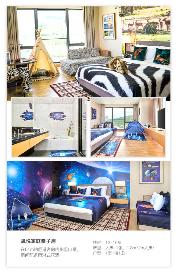 到了包邮区,先来个便宜的品,凯悦旗下499/晚还含了玩乐门票,这样的价格在莫干山很能打了。除了早餐外,还可在沃德喜马拉雅冰雪世界2大1小亲子票(价值149元)或开元森泊1大1小幻想岛门票(价值246元)任选,建议选幻想岛门票。套餐周末/清明不加价,仅五一(5.1-5.4)期间有100/晚补差,遛娃党住住可以的。