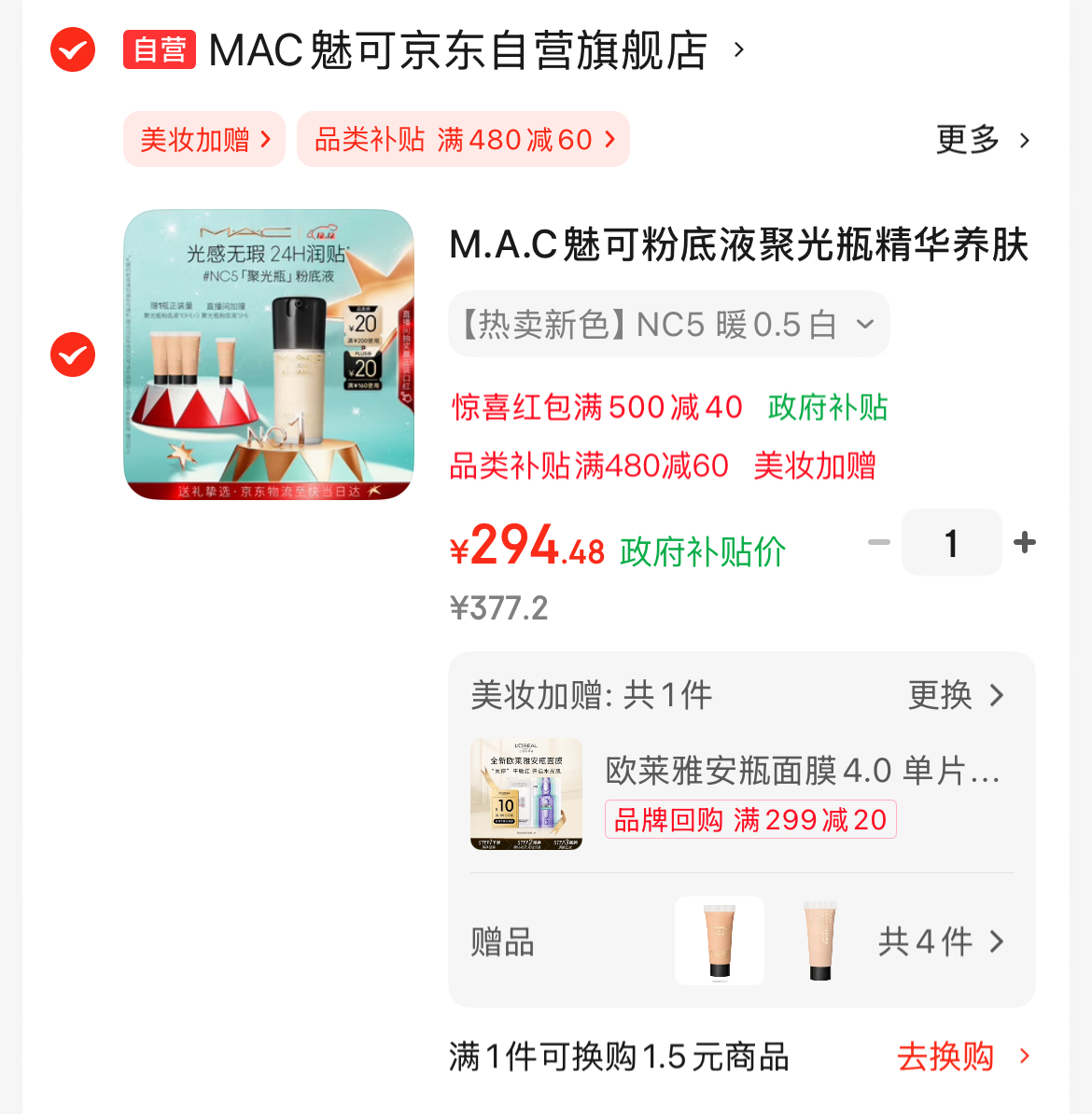 整单294💰到手65ml(30+10*3+5)