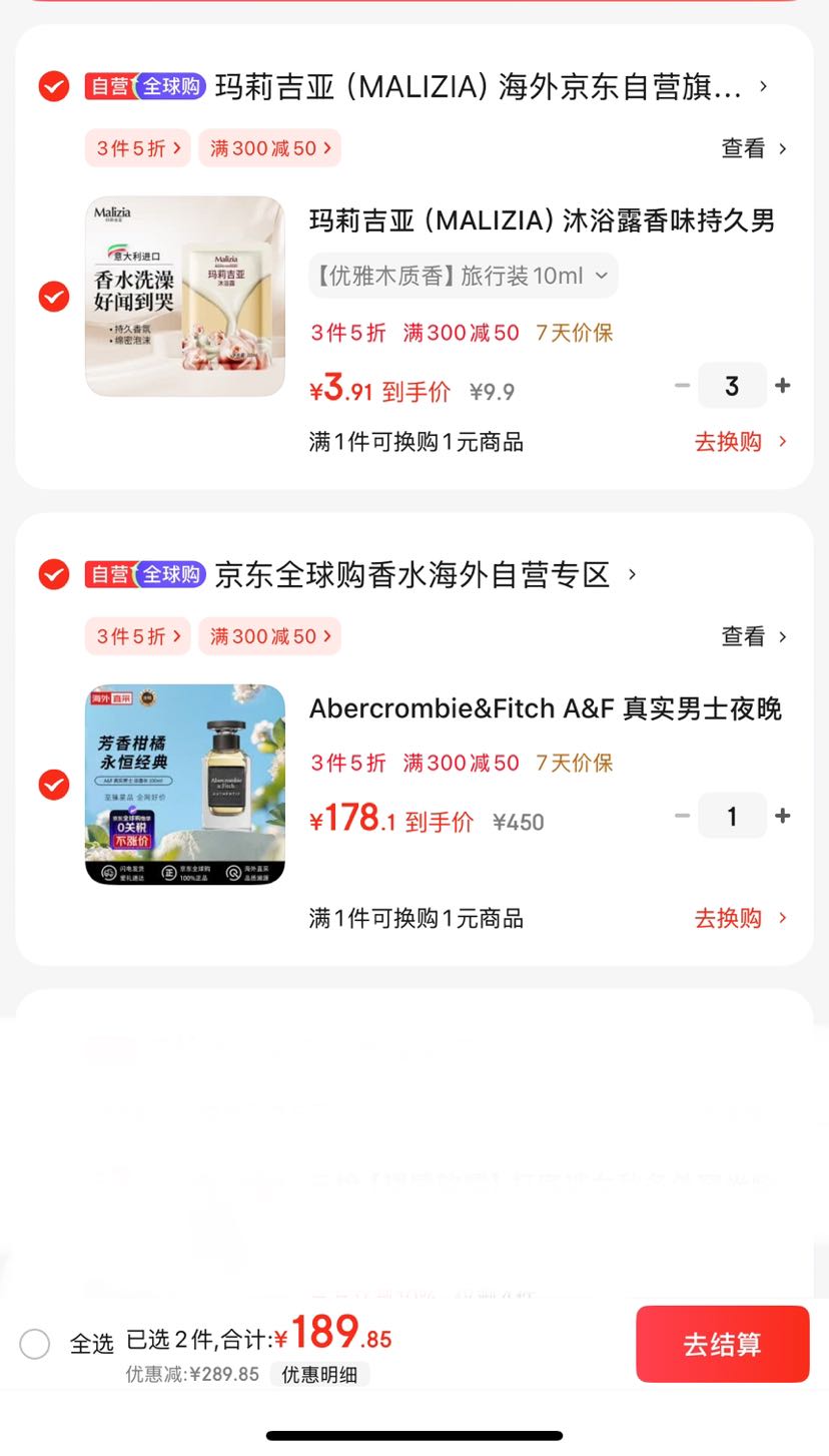 京东国际此款目前活动售价450元,下单领取满300减50元优惠券,下单1件凑单3件玛莉吉亚 沐浴露旅行装10ml参与满3件打5折优惠活动,主商品Plus会员实付低至155.6元。订单截图未含Plus会员优惠。