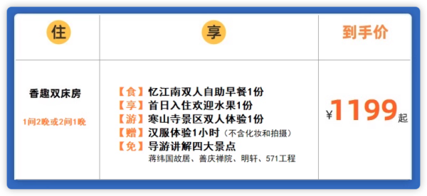 12日20点开售苏州南园宾馆 香趣双床房2晚+含双早+寒山寺双人门票等,价格为1199元。有效期至2025年6月30日,周末和节假日加价可用,详见产品页,支持花呗囤货,不约/过期可退。
