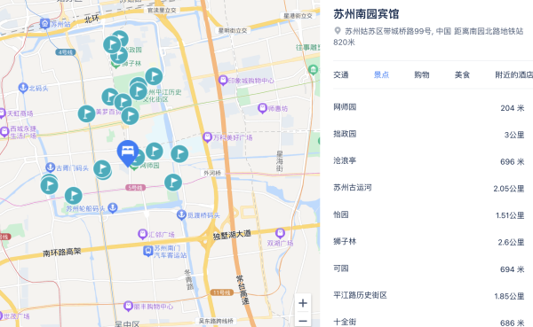 一般老牌酒店的位置都很绝,这家也是。位于市中心中,距离地铁出口800米内,距离沧浪亭、拙政园、狮子林不远步行就可到,出行方便。香趣双床房不加价时段的日历房价格800+,套餐折合599元/晚,划算不少,江浙沪周边游的可囤!南园宾馆⼀系列的文化体验活动也值得一去,如善庆禅院抄经,牡丹亭、香趣楼听琵琶和昆曲,特别地道。