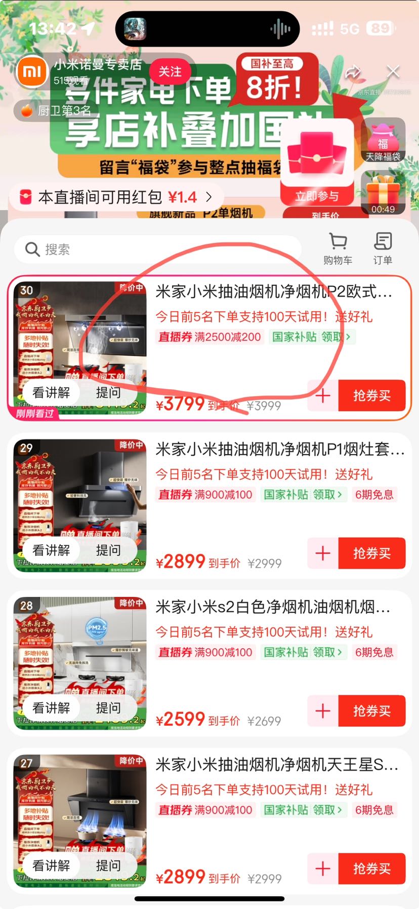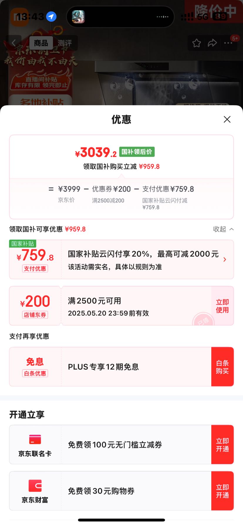 京东此款目前活动售价3999元,参与直播间领取满2500减200元,国家补贴20%优惠活动,下单1件,实付低至3039.2元。