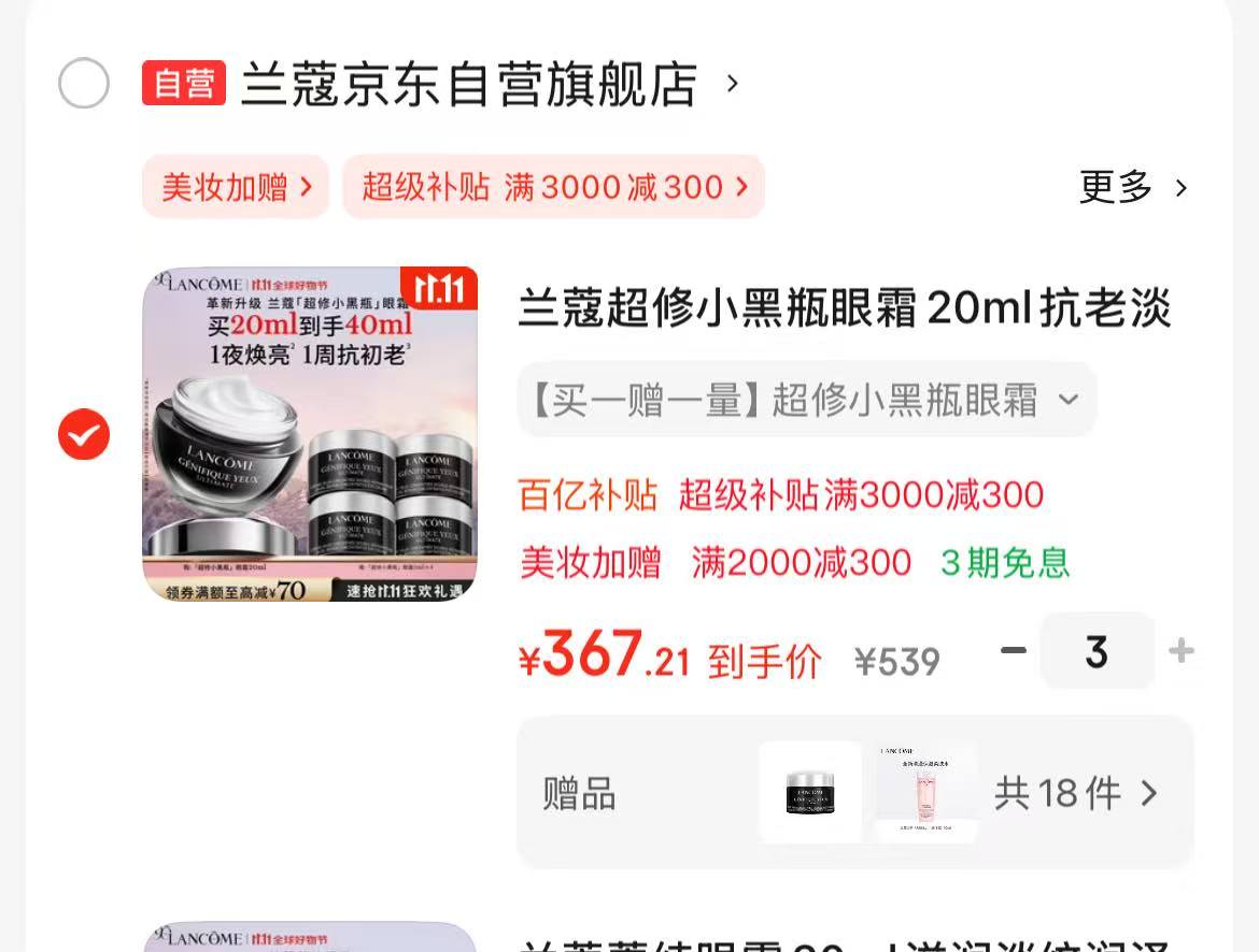 367💰兰蔻小黑瓶眼霜 买一送一再送粉水