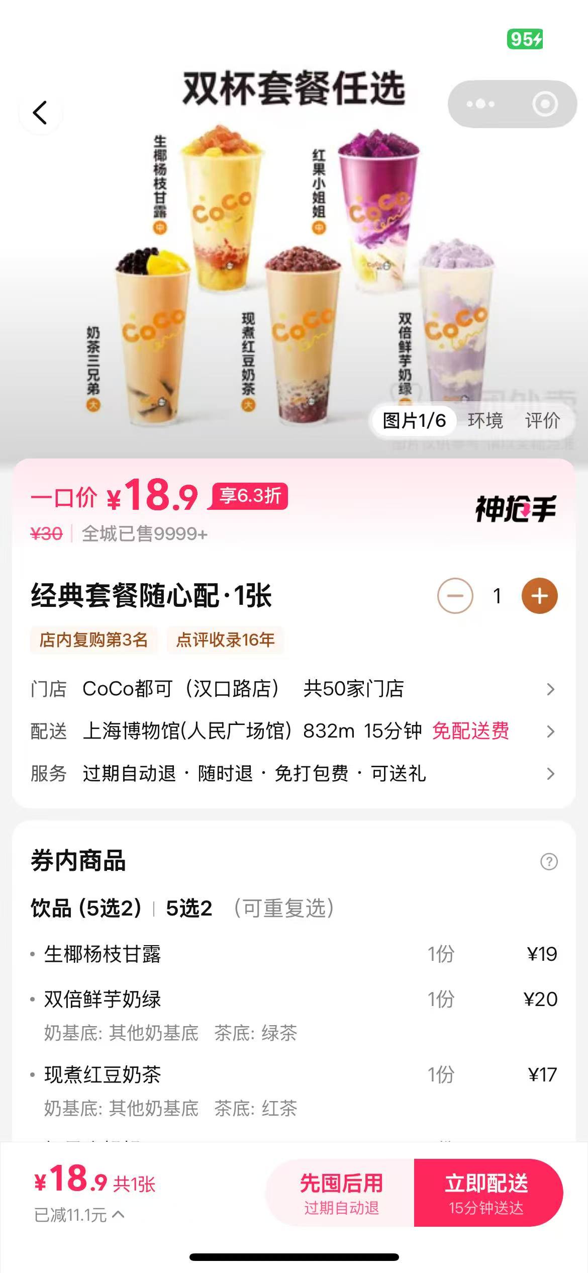 CoCo双杯套餐💰18.9 随心配五选二