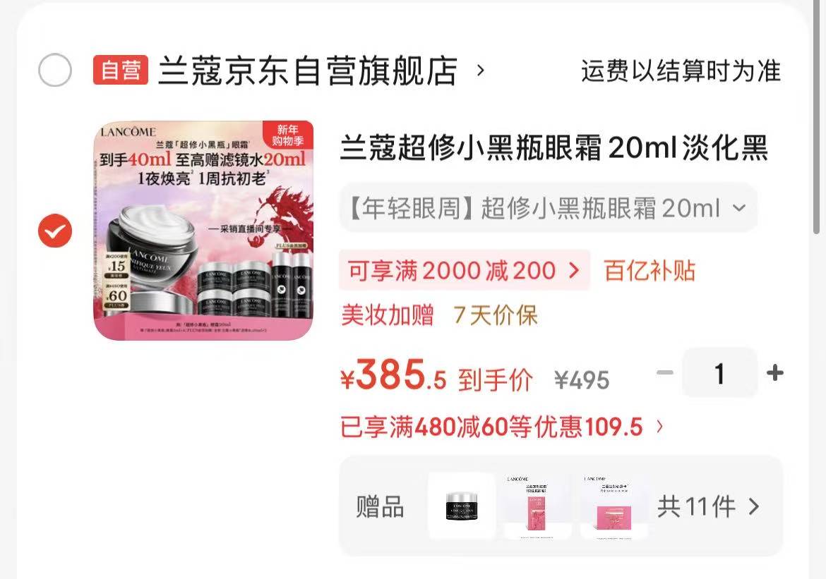 385💰兰蔻小黑瓶眼霜40ml+滤镜水20ml