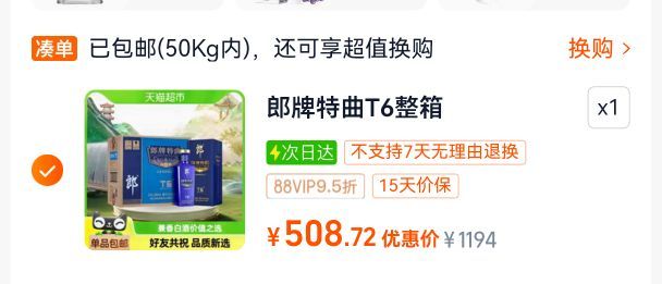 售价1194元,领20减20元优惠券,满1件打9.5折,立减566元,下拉详情跳转补贴页面加购,充卡200优惠5元,88vip低至508.72-5=503.72元(92折充卡500,低至500×0.92+8.72=468.72元)