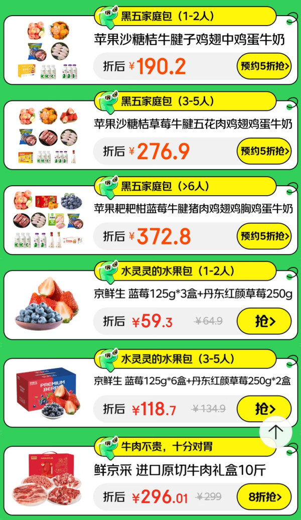 4、黑五五折包,优惠周周享,本期家庭包、水果包速览🔽超值5折到手!