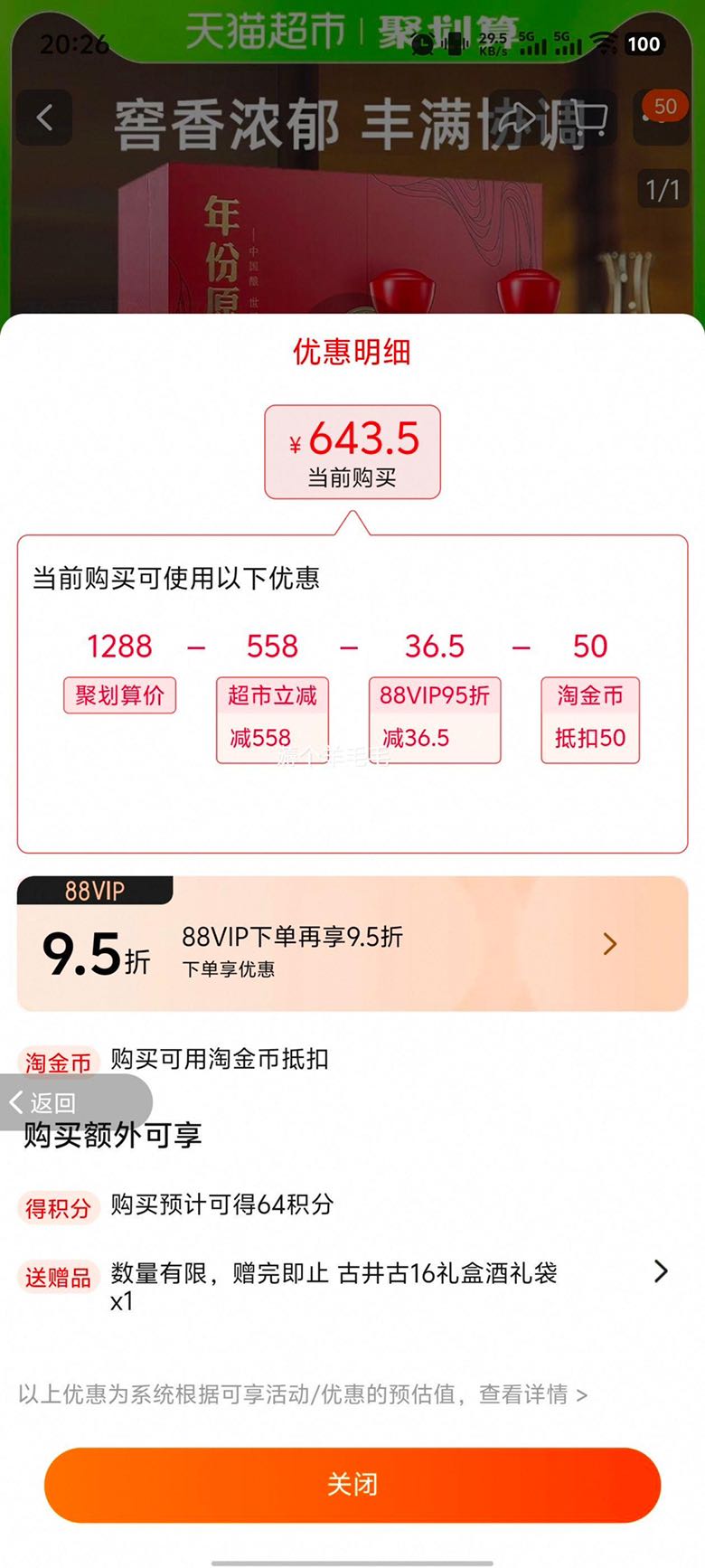 此款目前活动售价1288元,参与满1件打9.5折,立减558元优惠活动,下单1件,实付低至643.5元,近期好价。