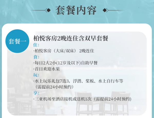 有预算的上,价格相对可以!三亚太阳湾柏悦酒店 柏悦客房2晚套餐(含早餐+水上玩乐7选3+接/送机等)