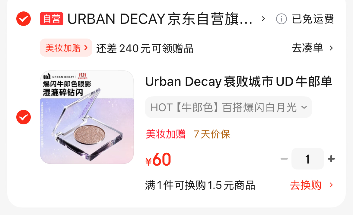 京东官旗UD爆闪牛郎眼影💰60!火了这么多年没有代餐!湿漉漉的碎钻感美疯~