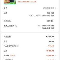 京东此款目前活动售价3699元,下单领取满999元减100元优惠券,plus立减14.8元,以旧换新补贴10元,秀视频返现50元,参与满3000元减400元优惠活动,下单1件,实付低至2449.36元,近期好价。
