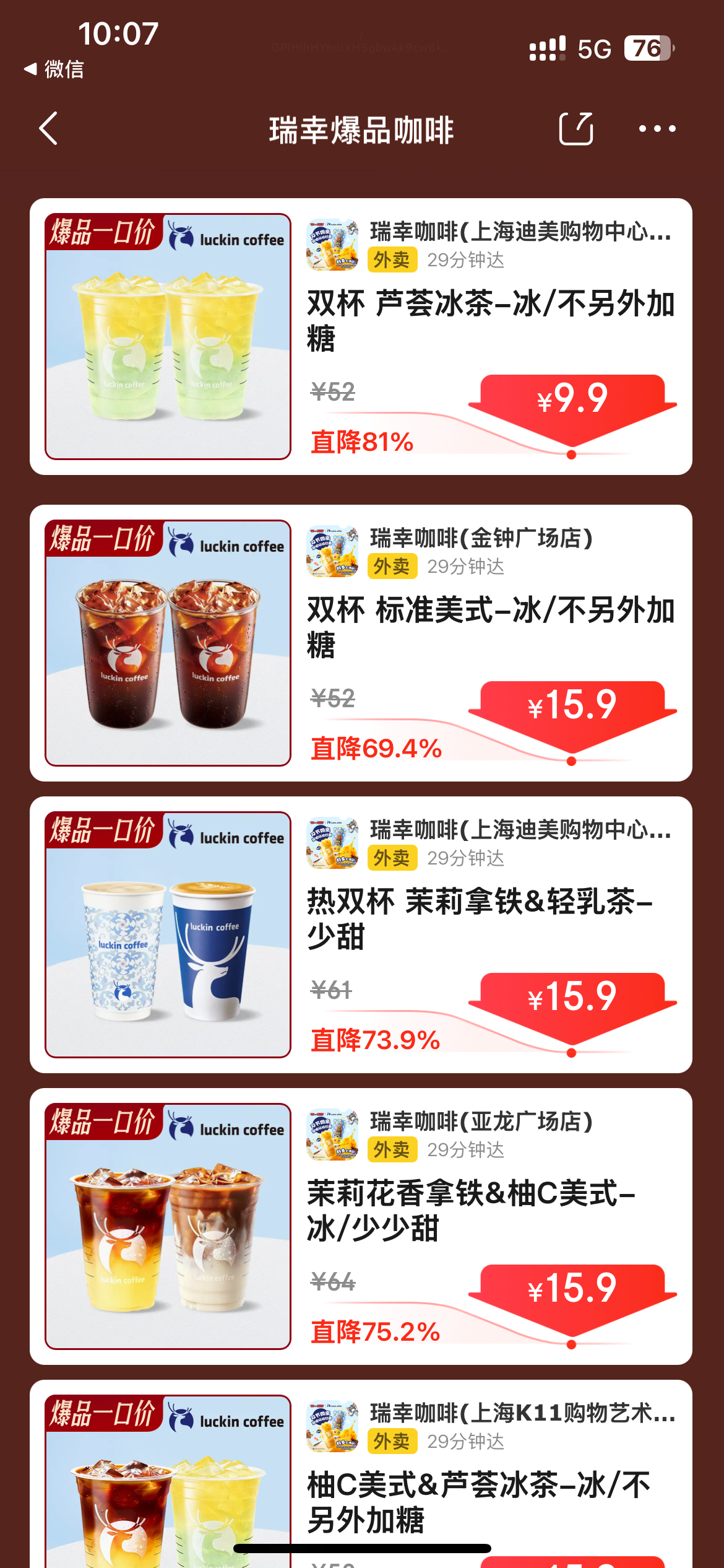 ☕瑞幸2杯💰9.9❗今日免配继续!