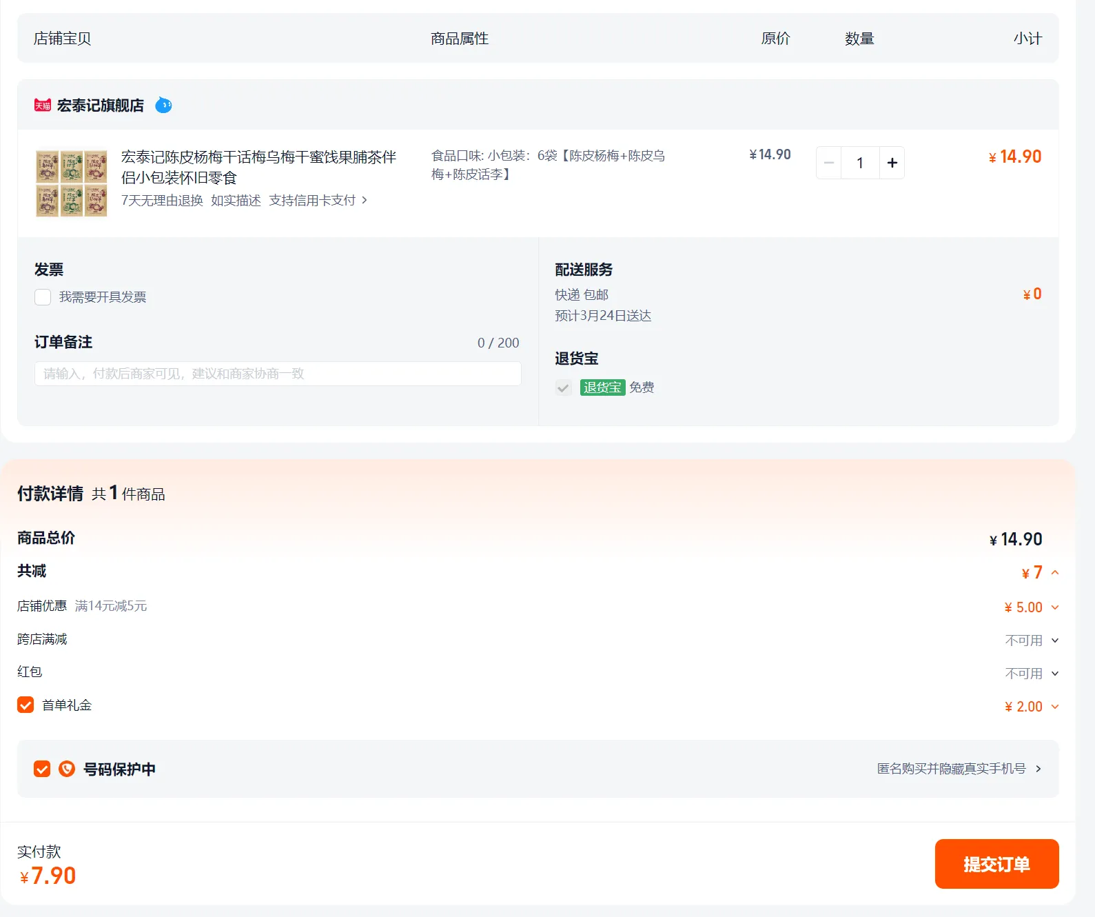 此商品目前在商城售价14.9元,参加优惠券满14元减5元的活动,叠加首单礼金1元,入手价【8.9元】包邮,到手6袋,真的是优惠多多,属于近期好价,适合各类人群选购,感兴趣的不容错过。第二件7.9元,拍2件更划算,颗粒饱满,果肉细腻,陈皮冰糖杨梅,肠胃胀气、晕车、孕吐等来一颗,提神醒脑,酸甜开味爽口,老人小孩孕妇均可吃。