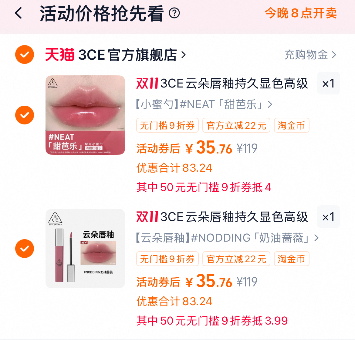 💰35/支3CE唇釉 ,云朵/小蜜勺/镜面都有!