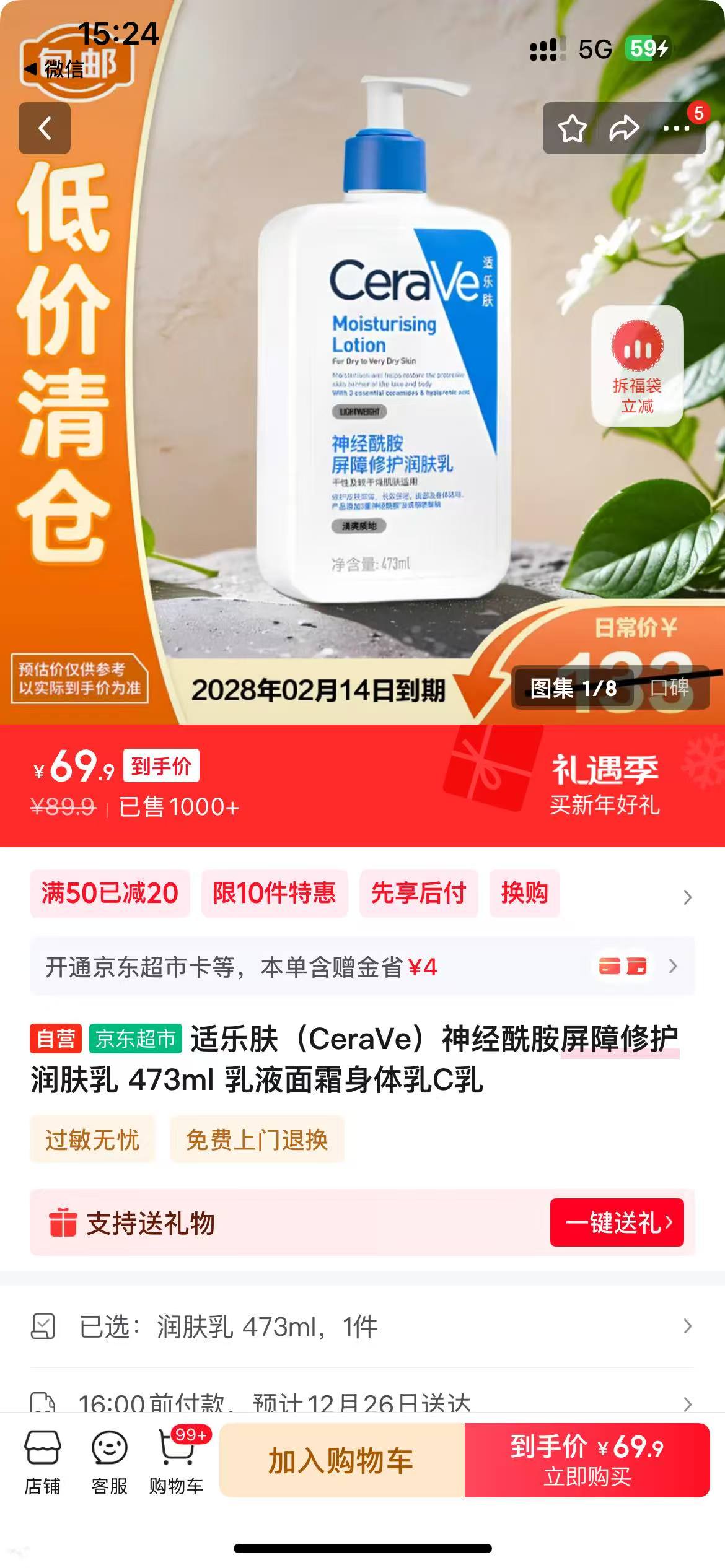 适乐肤润肤乳473ml正装💰69.9!